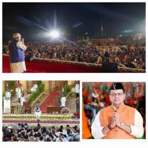 मुख्यमंत्री धामी ने कहां की माननीय प्रधानमंत्री के नेतृत्व में NDA को मिला पूर्ण बहुमत यह प्रदर्शित करता है कि देश की देवतुल्य जनता ने फिर एक बार भ्रष्टाचार एवं तुष्टिकरण की राजनीति करने वाली पार्टियों