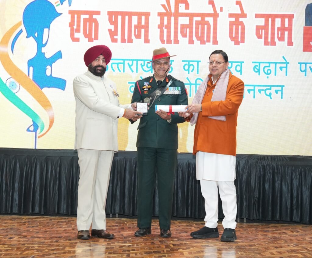 राज्यपाल लेफ्टिनेंट जनरल गुरमीत सिंह (से नि) एवं मुख्यमंत्री श्री पुष्कर सिंह धामी ने मंगलवार को सशस्त्र बल भूतपूर्व सैनिक दिवस (वेटरन्स डे) के अवसर पर राजभवन में सैनिक कल्याण विभाग द्वारा आयोजित ‘‘एक शाम सैनिकों के नाम’’ कार्यक्रम में प्रतिभाग किया। इस अवसर पर राज्यपाल और मुख्यमंत्री ने वीरता पदक विजेताओं और सराहनीय कार्य करने वाले पूर्व सैनिकों को सम्मानित किया। कार्यक्रम में अर्धसैनिक बल के जवानों और अधिकारियों को राज्यपाल प्रशंसा पत्र भी प्रदान किए गए।(सूची संलग्न) कार्यक्रम में कुमांऊ स्कॉउट्स, 4वीं बटालियन असम रेजिमेंट और 14वीं राजपूताना राइफल्स को भी उनके सराहनीय योगदान के लिए यूनिट प्रशंसा पत्र से सम्मानित किया गया।