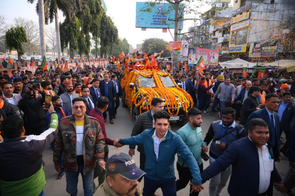 रूद्रपुर। मुख्यमंत्राी पुष्कर सिंह धामी ने बृहस्पतिवार को भाजपा मेयर प्रत्याशी विकास शर्मा एवं पार्षद प्रत्याशियों के समर्थन मे ऐतिहासिक रोड शो निकाला। रोड शो में भारी जनसैलाब उमड़ पड़ा। करीब दो घंटे चले रोड शो से सीएम धामी ने कार्यकर्ताओं में जोश भर दिया। रोड शो के दौरान पूरा शहर भाजपा मय नजर आया। रोड शो के दौरान मुख्यमंत्री ने रूद्रपुरवासियांे से ट्रिपल इंजन की सरकार बनाने के लिए भाजपा के पक्ष में मतदान का आहवान किया।