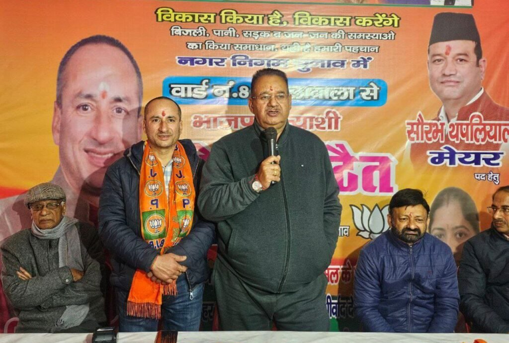 भाजपा महापौर प्रत्याशी सौरभ थपलियाल ने चुनावी रणभूमि के अंतर्गत पकड़ी रफ्तार राजपुर विधानसभा विधायक खजानदास जी के नेतृत्व...