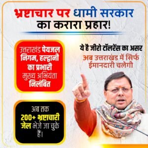 मालूम हो कि बीते तीन साल में सीएम धामी के निर्देश पर भ्रष्टाचार के खिलाफ व्यापक स्तर पर कार्रवाई की जा रही है। अब तक 200 से भी अधिक भ्रष्टाचारियों को सलाखों के पीछे भेजा जा चुका है।