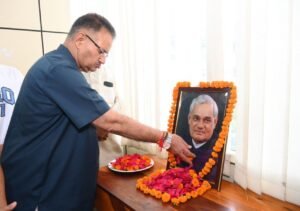 पूर्व प्रधानमंत्री भारत रत्न श्रद्धेय अटल बिहारी वाजपेयी को पुष्पांजलि अर्पित करते कैबिनेट मंत्री गणेश जोशी
