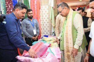 कृषि एवं ग्राम्य विकास मंत्री गणेश जोशी ने आज देहरादून के एक निजी होटल में सिल्क मार्क ऑर्गेनाइजेशन, केन्द्रीय रेशम बोर्ड, वस्त्र मंत्रालय भारत सरकार, रेशम निदेशालय उत्तराखण्ड एवं उत्तराखण्ड को-ऑपरेटिव रेशम फेडरेशन के संयुक्त तत्वावधान में आयोजित सिल्क एक्स्पो 2025 का शुभारंभ किया। इस अवसर पर मंत्री गणेश जोशी ने एक्स्पो में लगे स्टोलों का अवलोकन भी किया। मंत्री जोशी ने अवलोकन के दौरान उनके द्वारा सेलाकुई में दिए गए पॉवरलूम द्वारा तैयार की गई साड़ियों पर प्रसन्नता व्यक्त की।