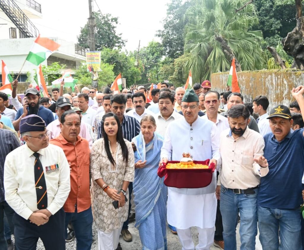 सैनिक कल्याण मंत्री गणेश जोशी ने आज शहीद सम्मान यात्रा 2.0 के अंतर्गत अमर शहीद लेफ्टिनेंट प्रतीक आचार्य के नैशविला रोड डोभालवाला स्थित आवास पर पहुंचकर उनके परिजनों से भेंट की। इस दौरान मंत्री जोशी ने शहीद के चित्र पर माल्यार्पण कर श्रद्धांजलि अर्पित की तथा उनके आंगन की पवित्र मिट्टी का ताम्रकलश में संग्रहण किया।