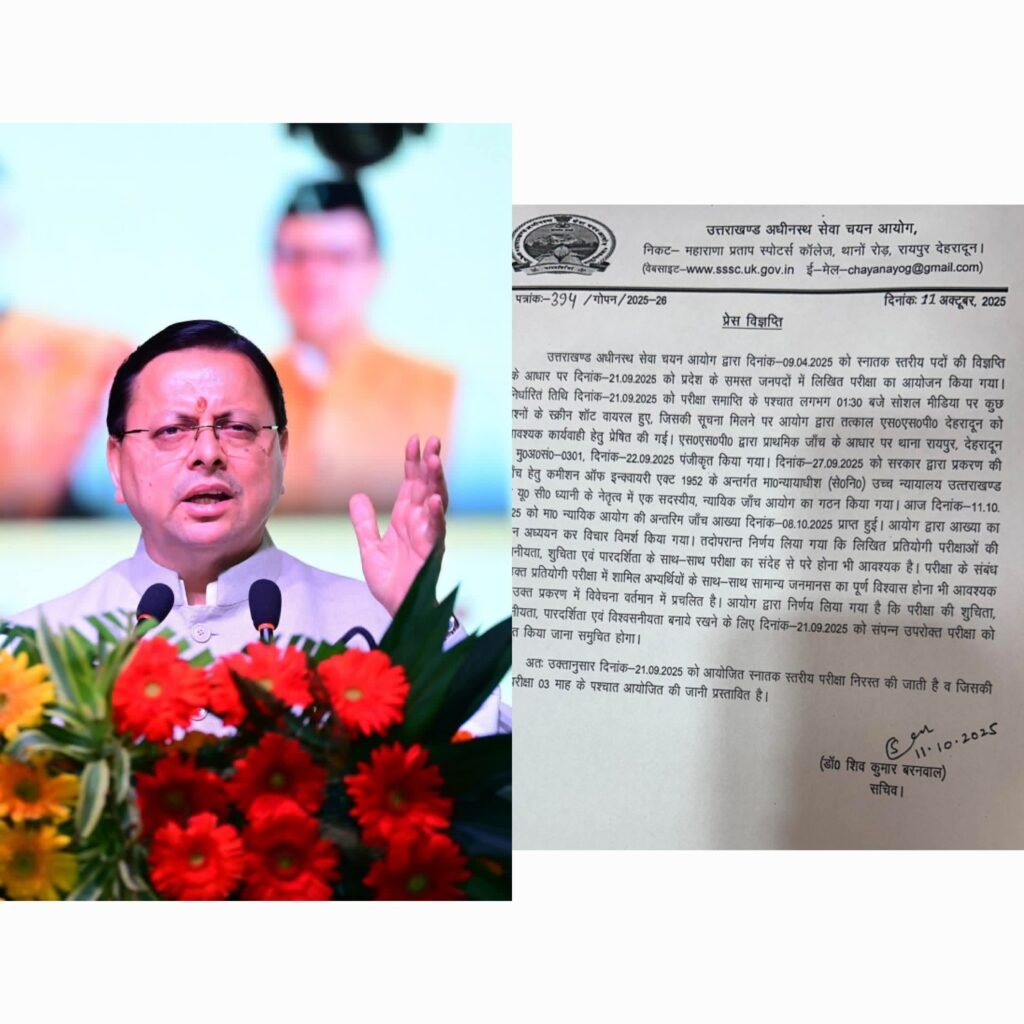 धामी सरकार का ऐतिहासिक निर्णय — पारदर्शिता और निष्पक्षता के लिए परीक्षा रद्द, तीन माह बाद होगी पुनः परीक्षा!